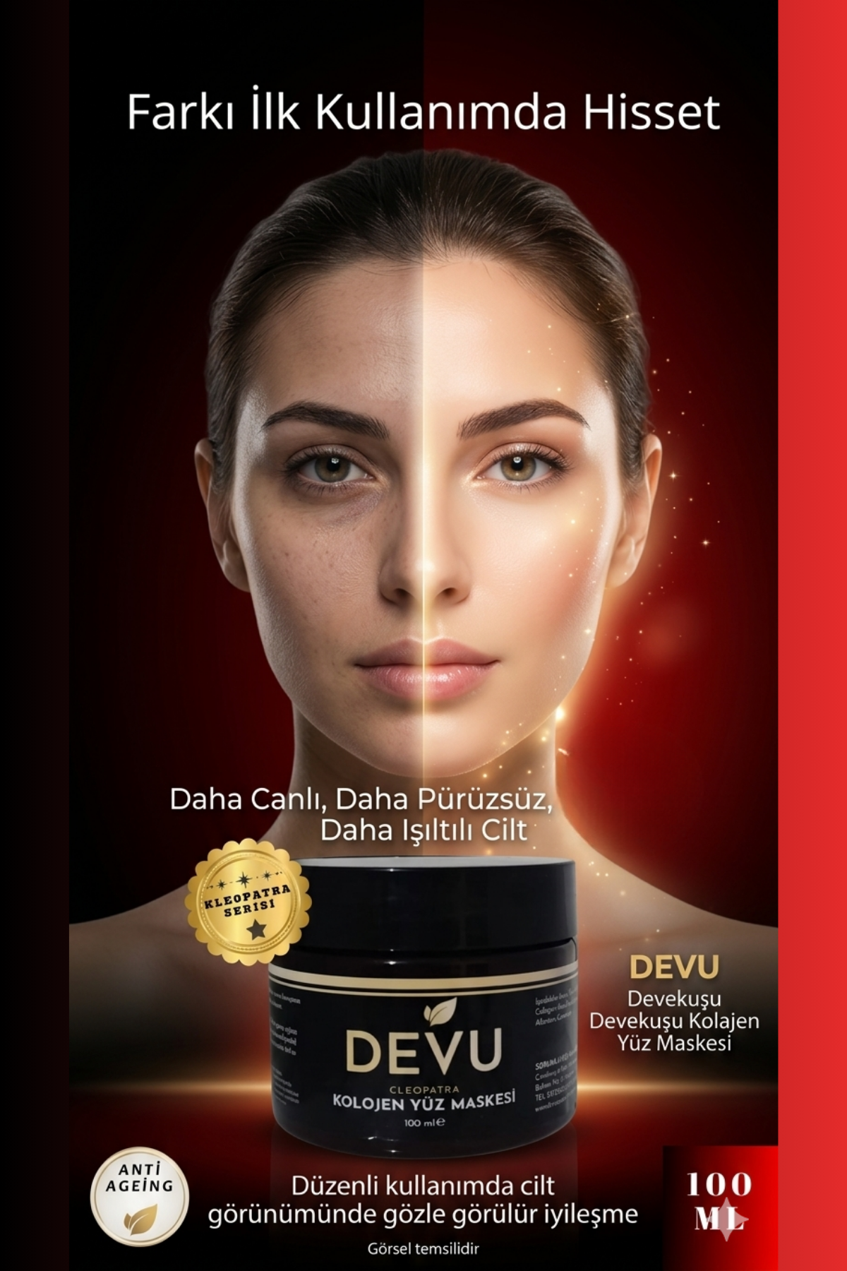 Yaşlanma karşıtı formülü ile cildinizi yenileyin. DeveKuşu kolajeninin güçlü etkisi, ince çizgileri azaltmaya ve cilt elastikiyetini artırmaya yardımcı olur. Doğal bileşenler sayesinde cildiniz daha sıkı, parlak ve genç görünümlü hale gelir. Haftalık kullanımla görünür sonuçlar elde edin. Tüm cilt tiplerine uygun, hassas formülasyon.